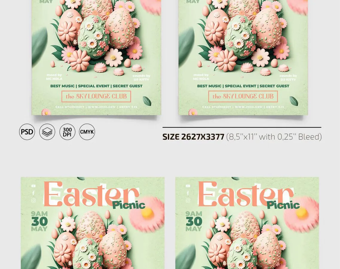 Green and Pink Easter Picnic Flyer / Instagram Post Template