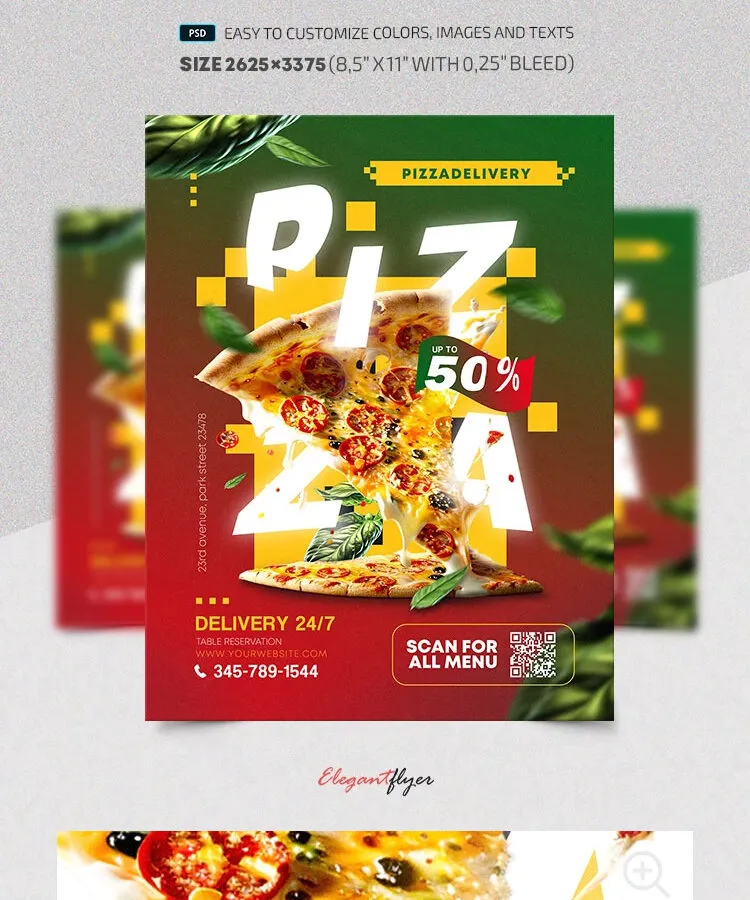 Promote and invite people to your restaurant with a professional and lickerish design like this basil pizza flyer template. A combination of red and colors with playful lettering creates a catchy layout that will convey the delicious taste.