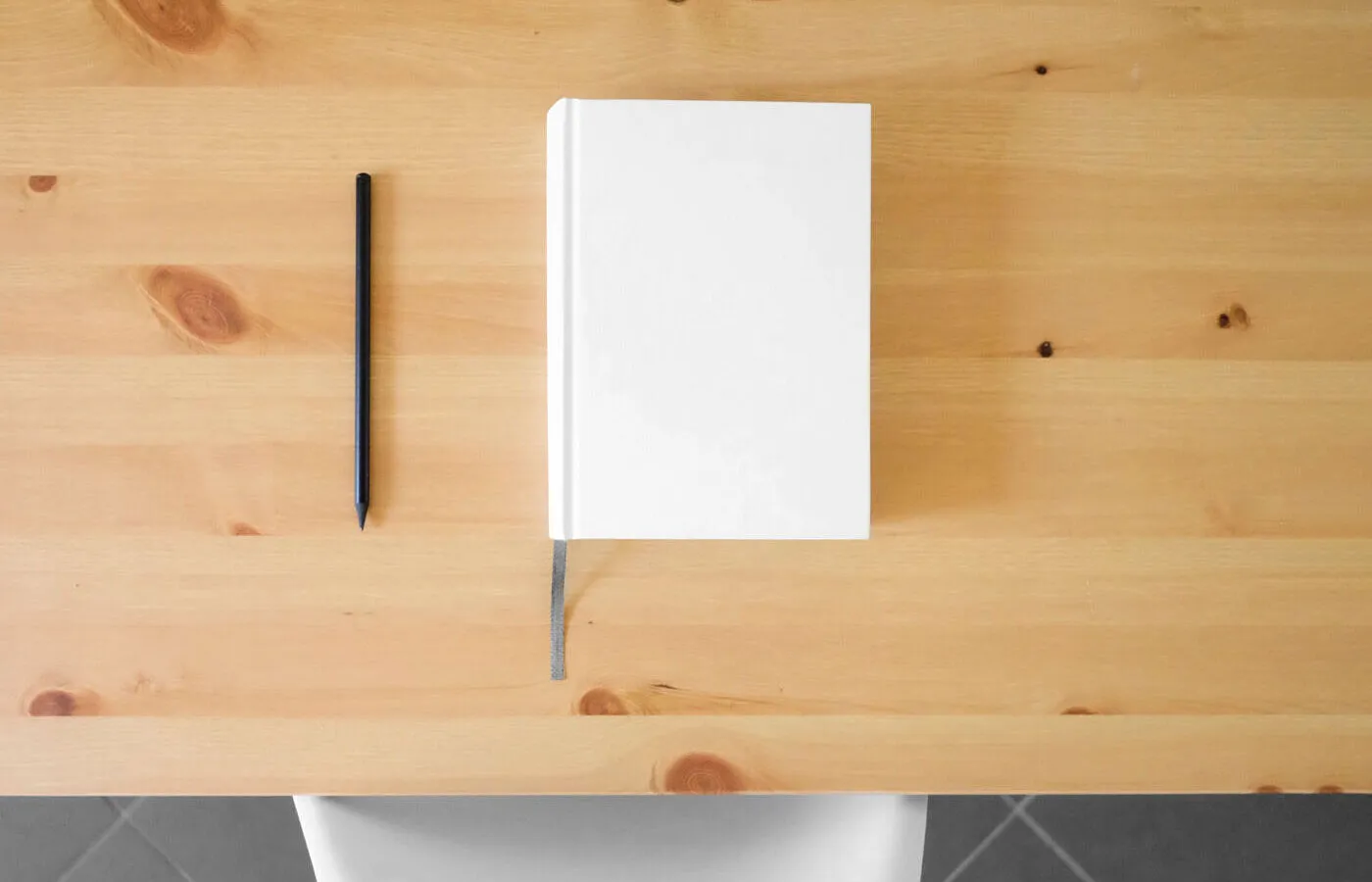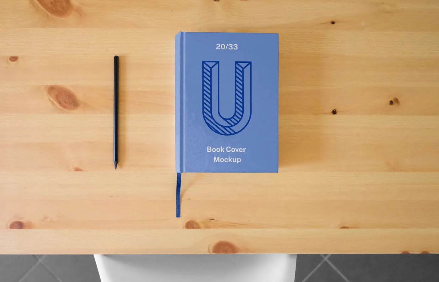 Sure it’s wrong to judge a book by its cover, but let’s be honest; you can’t deny the alluring role it plays when deciding which book to buy, especially when you have endless options. This mockup is actually an overhead shot of a hard-cover book next to a black pencil neatly lying down on a wooden table.