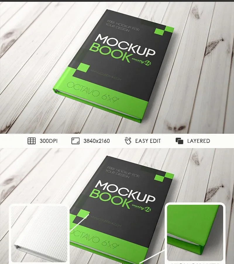Set against a wooden table, the background’s warm tones complement the book’s design beautifully. This mockup is easy to edit, allowing you to insert your own image seamlessly. Plus, it offers high-resolution quality, ensuring your design looks sharp and professional.