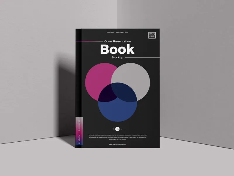 This mockup includes a realistic shadow cast on the back wall, enhancing the natural appearance of the scene. You can customize the visible parts of the book with your own graphics and also adjust the colors of the walls and surface to better align with your project’s aesthetic needs.