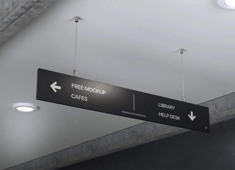 For inserting special details for places of the museum, hotel, art gallery, hospital, airport, and more, to give information about the spot you look for, nothing is more important than wayfinding signs to help you reach your desired place with confidence. Luckily, we offer you a modern horizontal direction mockup that is beneficial for finding the sites.