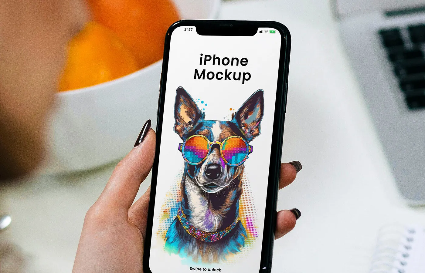 Present your app in a familiar and everyday setting with the iPhone in Woman Hand Mockup. This PSD file features the iPhone held naturally, offering a personal and realistic element to your presentation. You can easily insert your screen content using smart object layers, ensuring a smooth integration that emphasizes authentic grip, natural lighting, and an immediate sense of use.