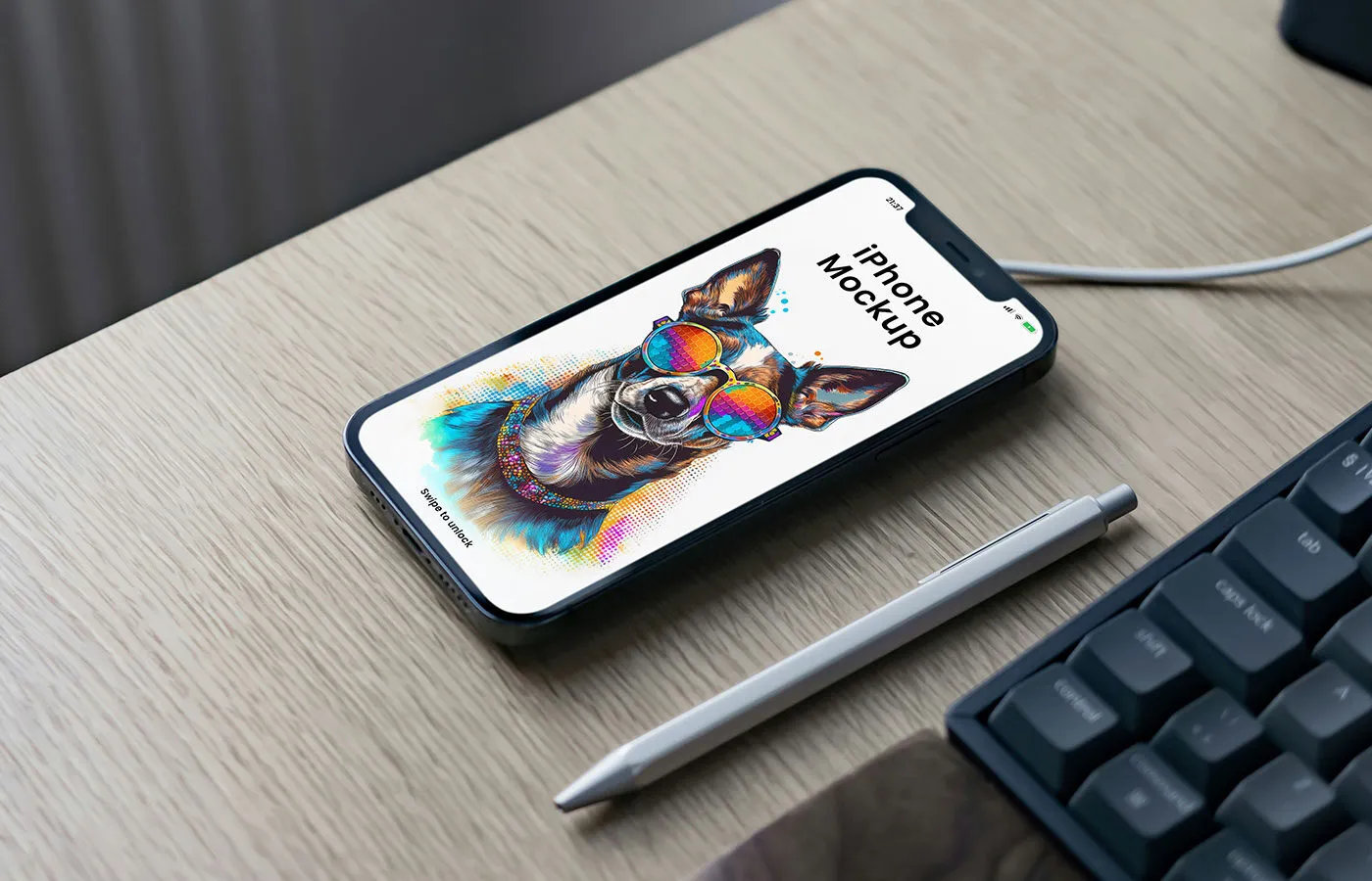 Showcase your digital designs with the iPhone on Charger Mockup. This high-resolution mockup displays a photorealistic iPhone on a charger, offering a modern and minimalist look ideal for app interfaces, websites, and branding projects. The design features clean lines and subtle shadows, providing a professional setting that enhances the visual appeal of your work.