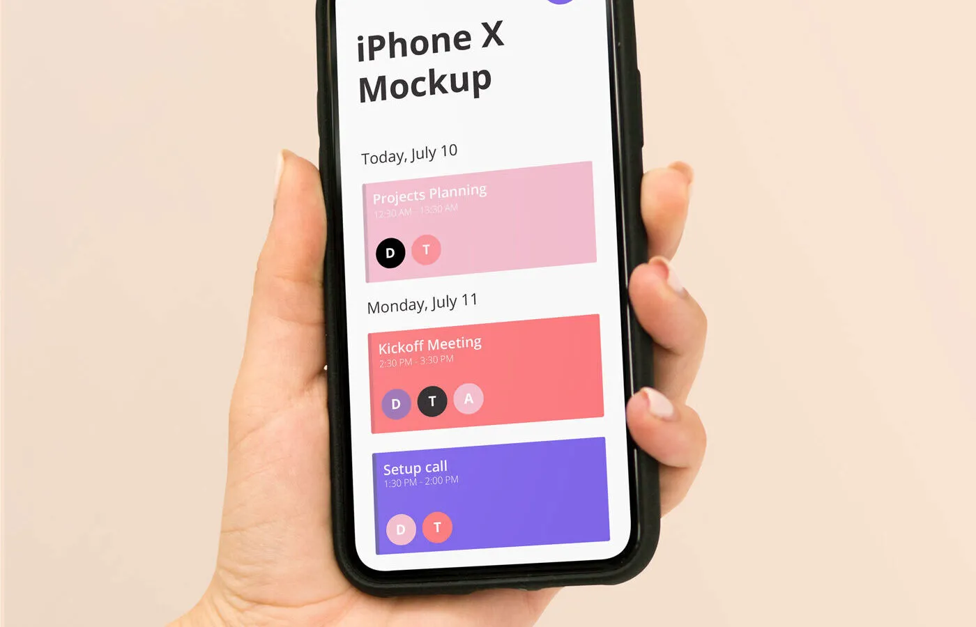 The iPhone X in a Woman’s Hand Mockup provides a straightforward way to present your UI design realistically. This mockup features a woman’s hand holding an iPhone X, allowing you to easily display your design on the screen. Whether you want to showcase a user interface, wallpaper, or text, this mockup makes it simple.