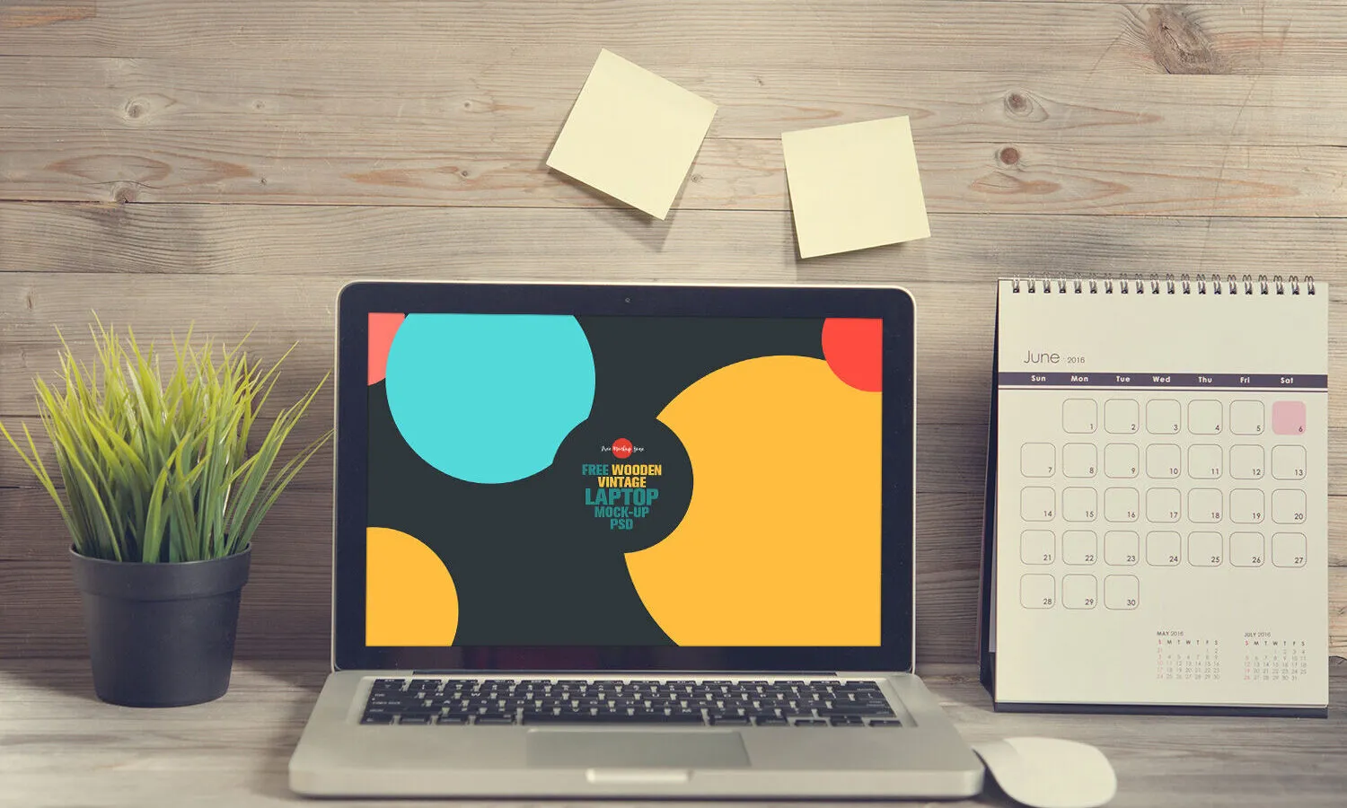As you can see, there are decorative elements in the scene to perk it up, such as a plant pot and a desk calendar on each side of the desk with the laptop in between. Thanks to Free Mockup Zone, you’re provided with this PSD mockup to make outstanding presentations of your design.
