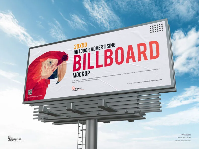 Case in point, this brilliant not only displays the design installed on a pole against a beautiful sky, but it also lends creases to it for a more realistic result. You know it can be your design up on the billboard, right? Just obtain the file from the link and get started now.