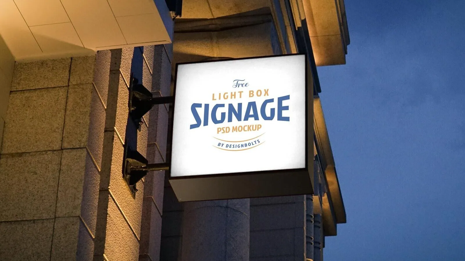 Low-Angle View Square Wall Mounted Sign Lightbox Mockup