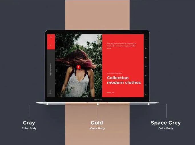 Here comes a MacBook Air mockup which is the best choice for presenting your app projects in a professional manner. This gorgeous comes in a PSD format and includes a single shot in the top view of the MacBook laid on the surface opened. The interesting fact is that you’ll get the MacBook in three colors gold, gray, and gray space. Plus, you can change the background as well.