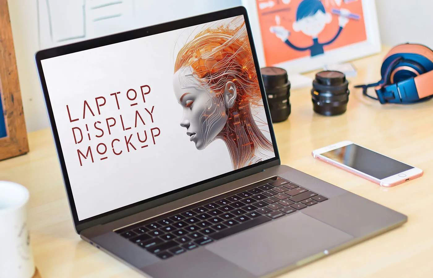 This mockup is suitable for freelancers, agencies, and tech brands looking to add a professional touch to portfolios and presentations. It offers a polished setting that complements great ideas, allowing creativity to shine.