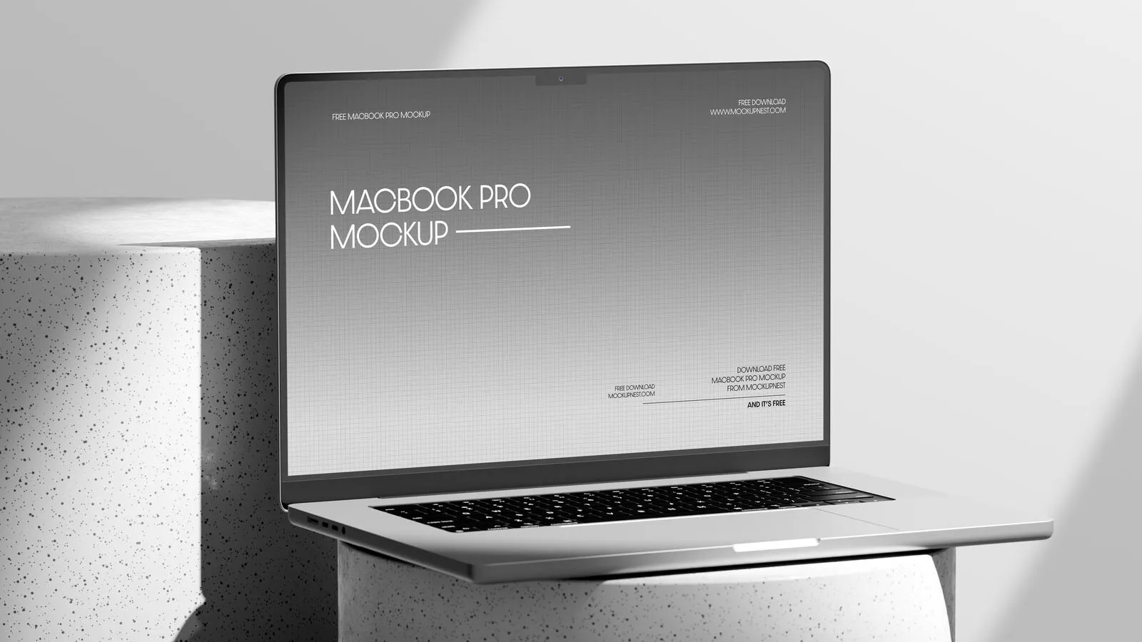 Present your digital designs with a touch of sophistication using the MacBook Pro Mockup on a Round Podium. This high-quality mockup features a sleek MacBook Pro set on a simple round podium, making it ideal for highlighting UI/UX projects, website presentations, and branding visuals.