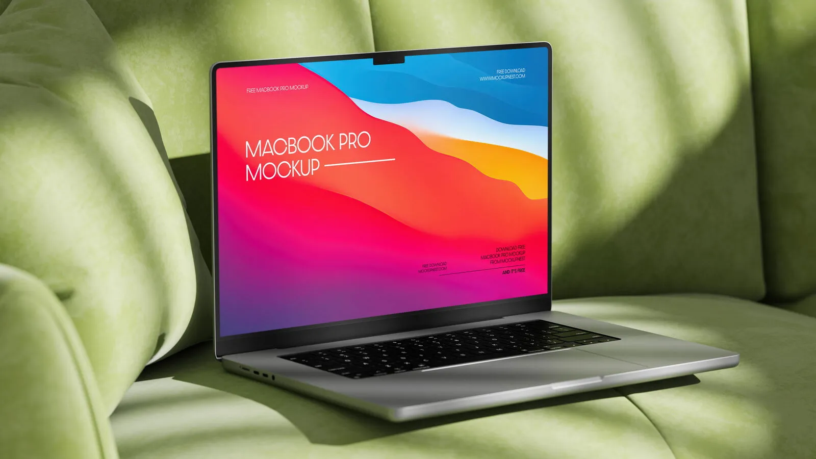 Present your work in a relaxed and modern setting with the MacBook Pro Mockup on Sofa. This PSD file features the laptop casually placed on a contemporary sofa, offering a comfortable scene that reflects today’s flexible workstyles. You can easily insert your screen content using smart object layers for a seamless look with soft home lighting.