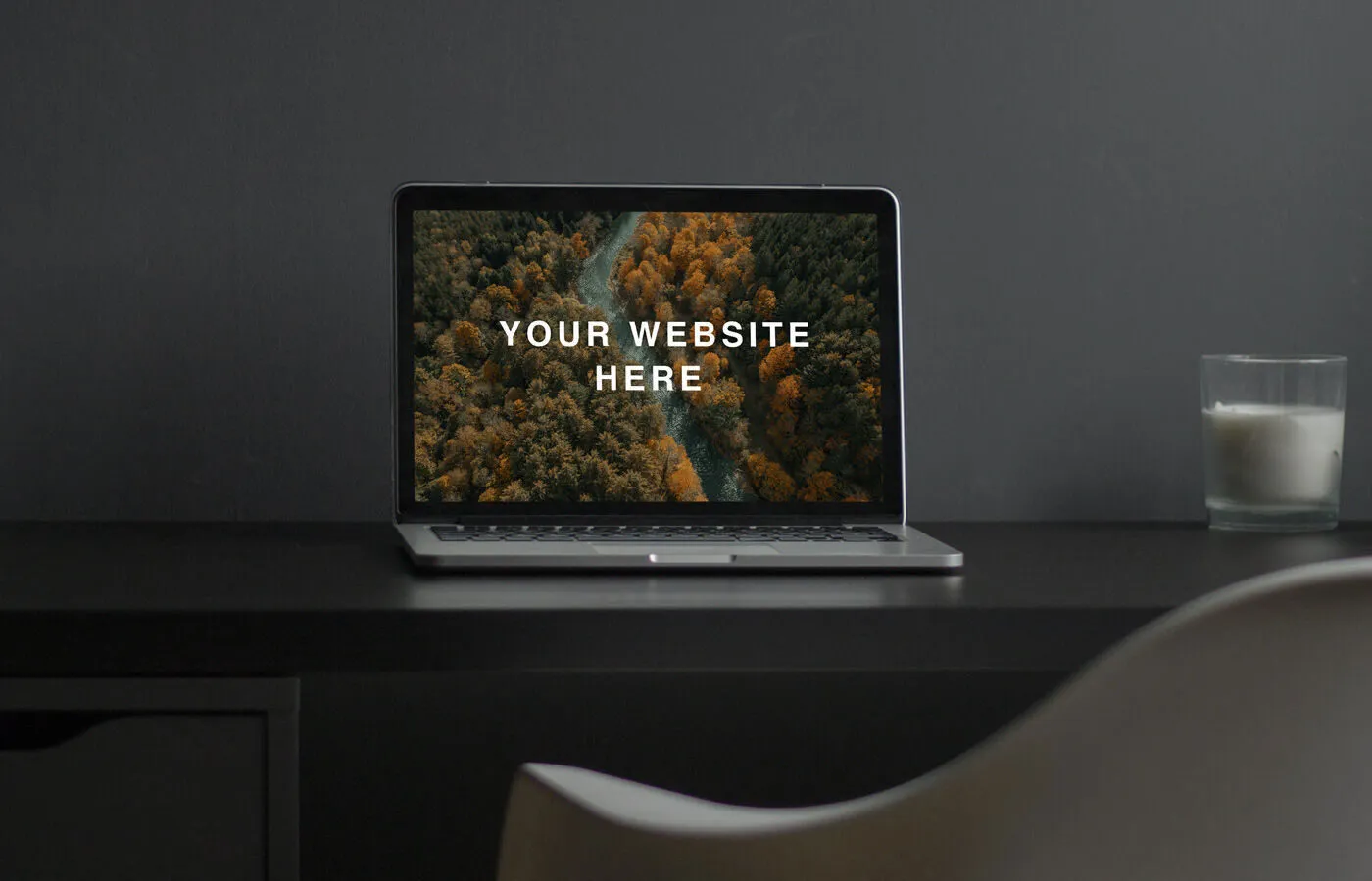 This mockup features a MacBook placed on a desk with a small candle positioned on the right side. The setup offers a neat and elegant view, making it ideal for showcasing your product in a minimalistic setting.