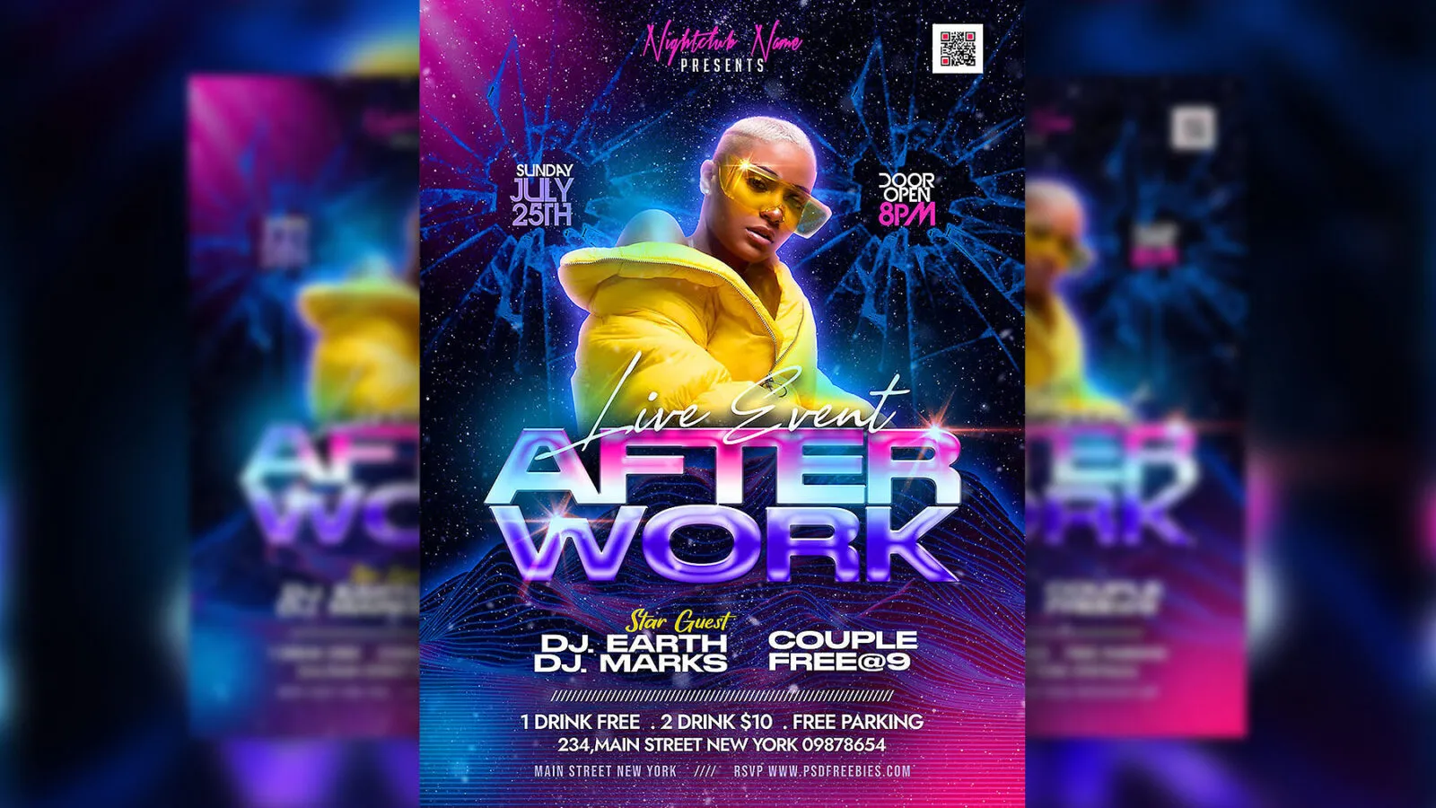 Mesmerizing Night Club Party Event Flyer Template is designed to help you create an engaging invitation for your next party. This template stands out with its unique and striking design, making it an excellent choice for attracting attendees to your event.