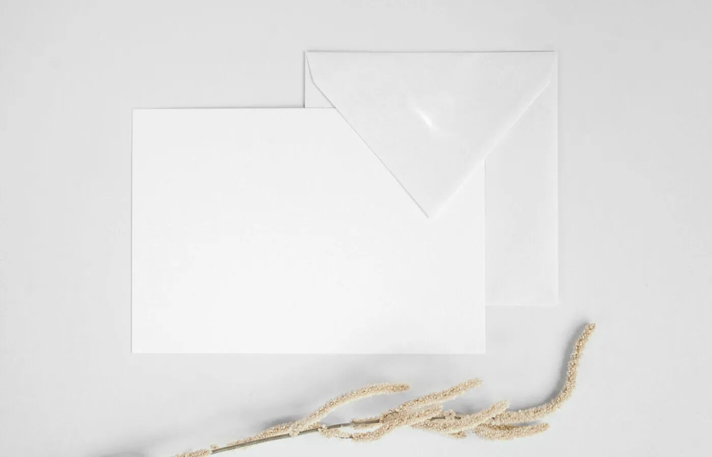 With this lifelike mockup, you will showcase a flawless presentation of your project. You are provided with a postcard laid horizontally on an envelope placed on an off-white background with the envelope covering the top right corner of the postcard as you see in the picture. But it is not just that. There you can also see a dried stem in the scene as an ornamental object. Drag and drop your own project via smart layers and you are good to go.