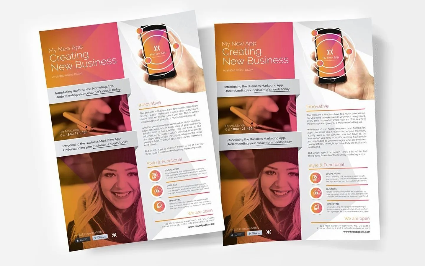 Printing advertisements can promote any graphics expertly, even digital ones. This freebie introduces two A4 layouts which can contain UI graphics and broadcast them. Both of the pages show a hand holding a smartphone. Add your desired graphics on-screen of the phone.