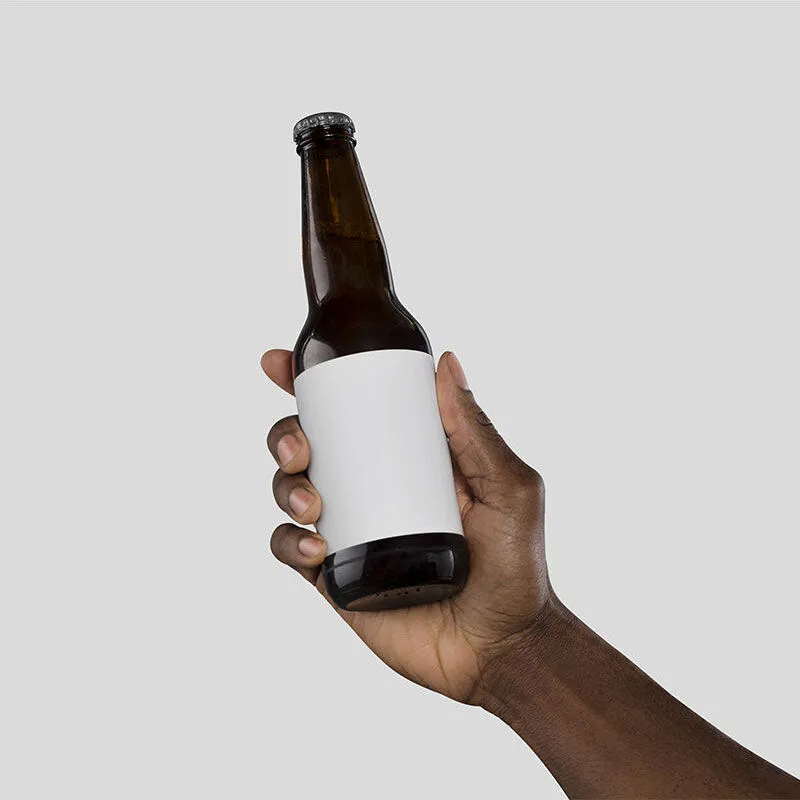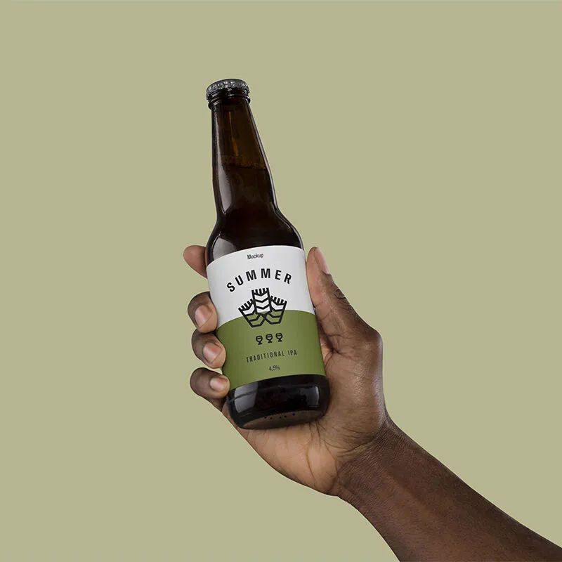 This mockup features a man’s hand holding a beer bottle, providing designers with a realistic way to visualize their artwork. It allows you to see how your branding design would appear in a real-life setting, making it a valuable tool for presentations.