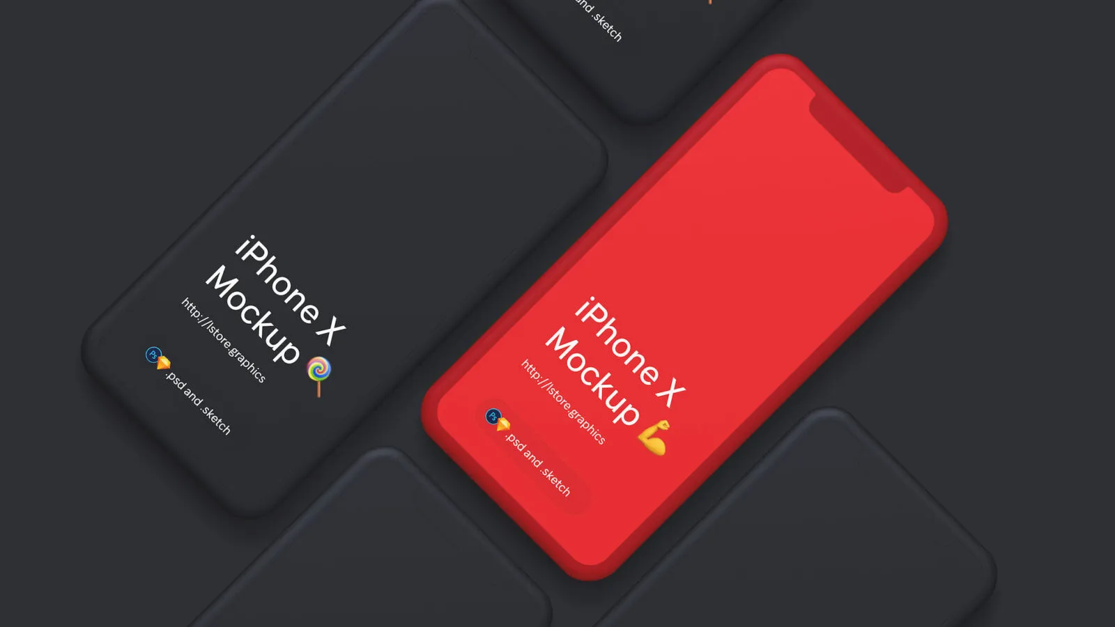 This mockup features an overhead view of five iPhone X models, with two fully visible and the remaining three partially shown. It provides a versatile platform for showcasing your UI designs or other graphics on these smartphones.
