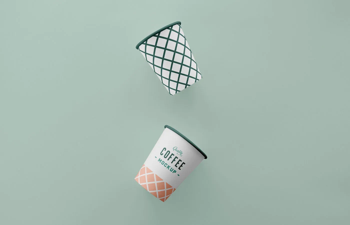 Mockup Displaying Two Floating Coffee Paper Cups
