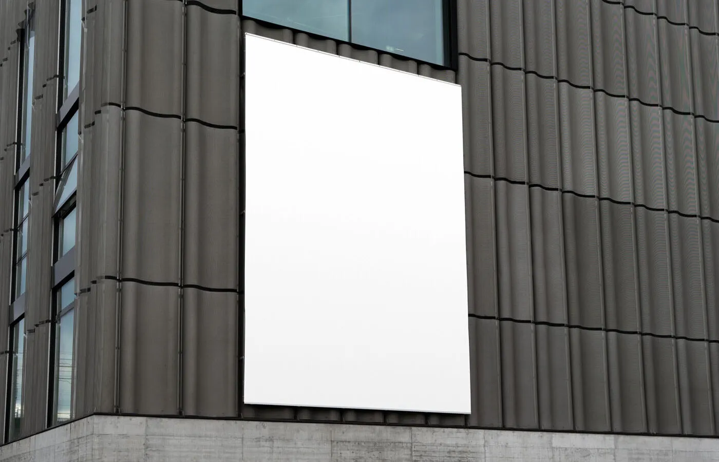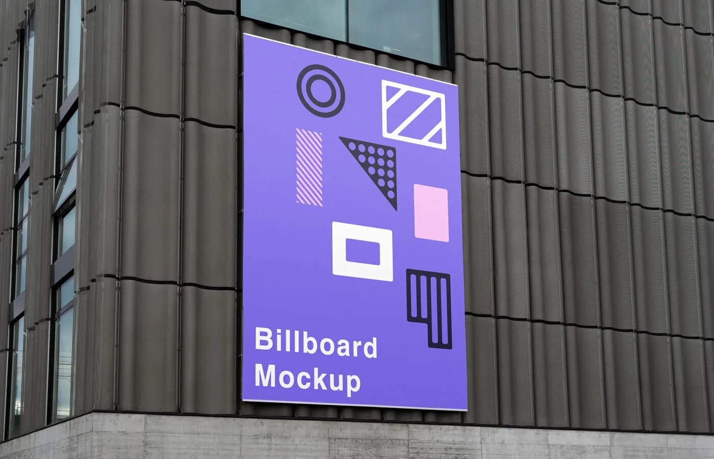 Mockup Displaying Vertical Billboard Mounted on a Building