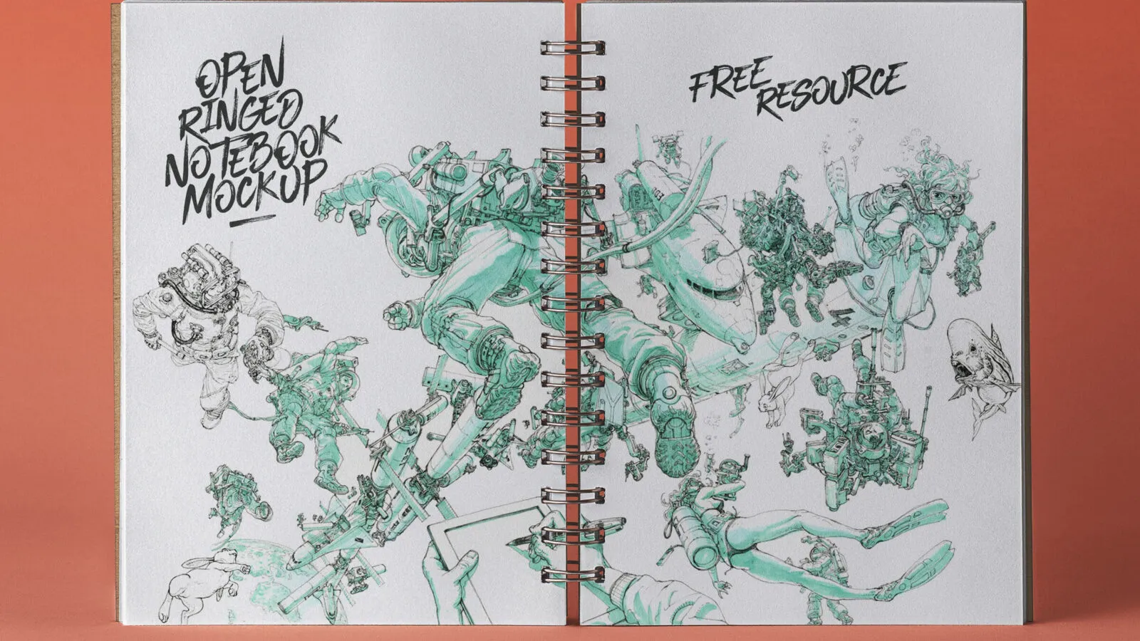 Mockup Featuring an Open Ringed Notebook on a Solid Background