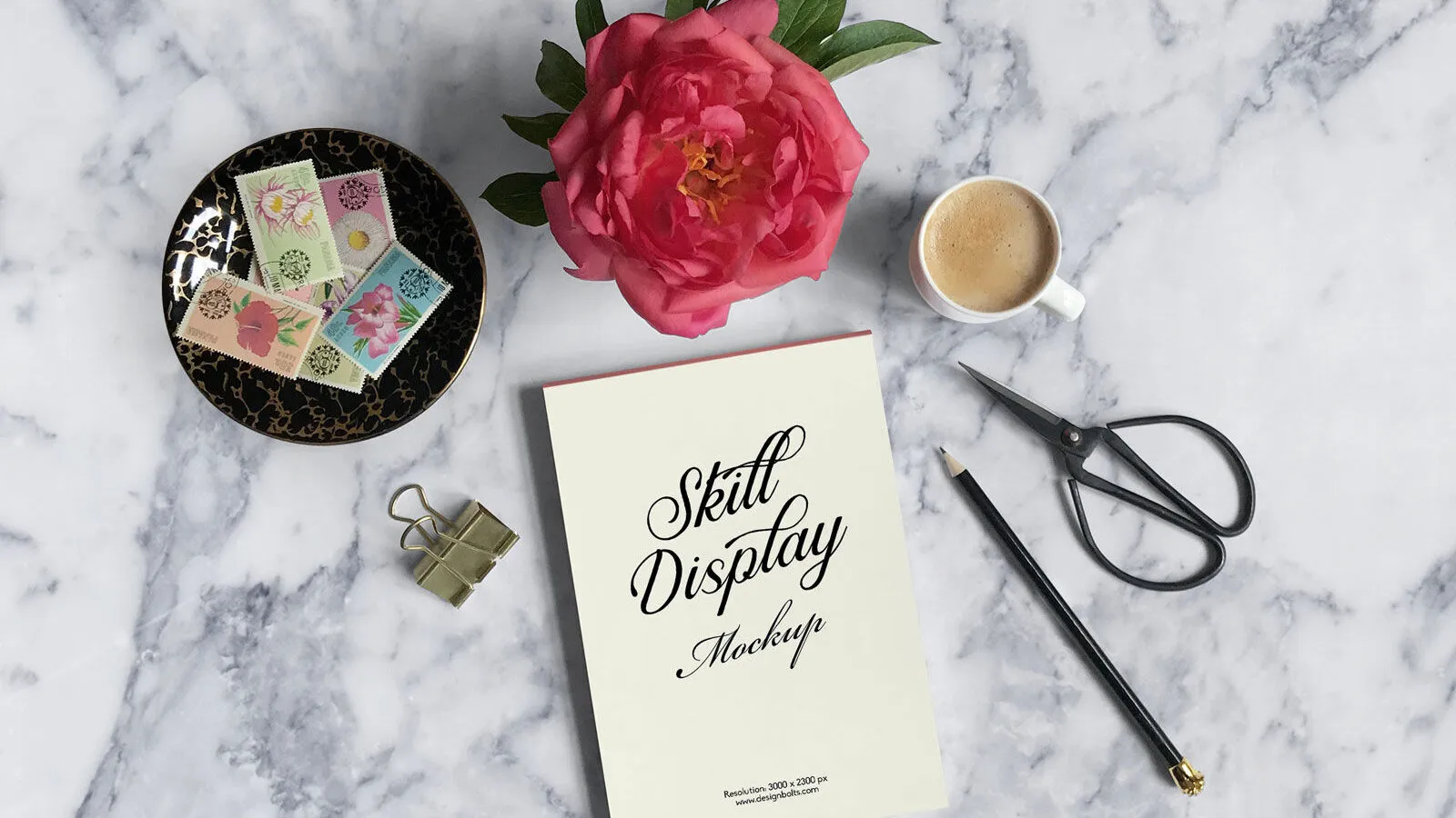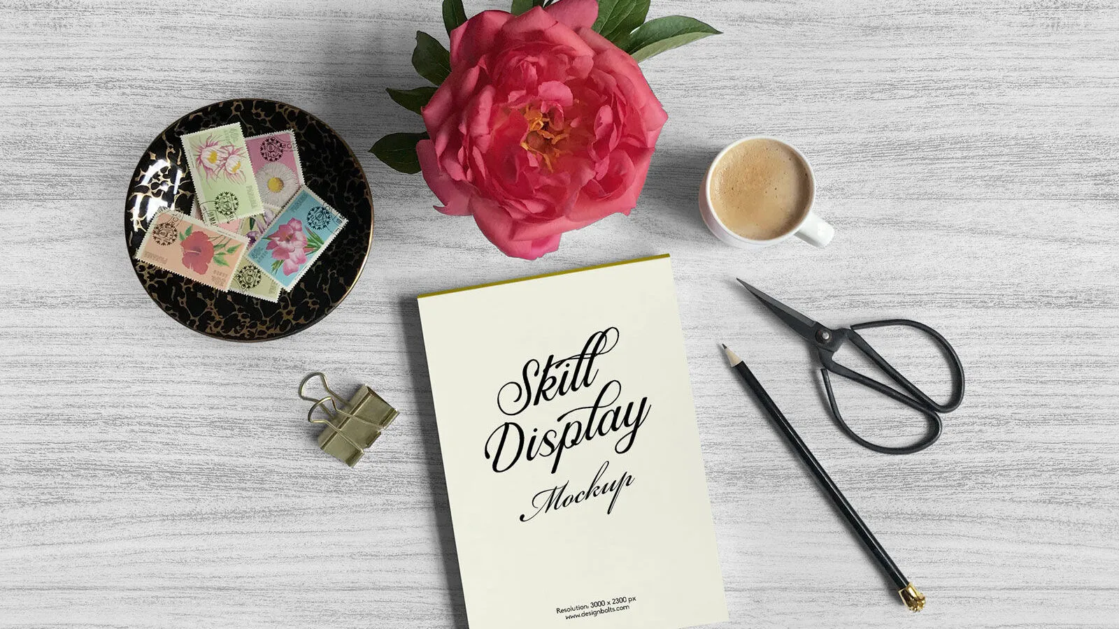 One of the first elements for doing every artwork is being in a beautiful environment that inspires you. Drawing is not an exception. To draw artistically, you need to be in a setting just like today’s . It shows an overhead shot of a gorgeous scene. There is a bowl full of colorful stamps, a lovely flower, a cup of coffee, a paper clip, a seizer, and of course, the target object, which is a drawing pad.