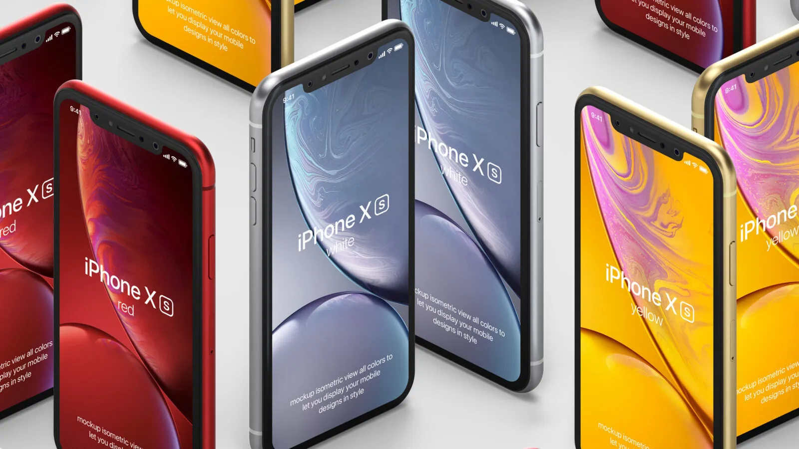 This mockup featuring several iPhone XRs is a versatile resource from Pixeden. It showcases multiple iPhones standing in different directions, providing a dynamic way to present these devices. This setup allows you to highlight the modern design and innovative features of the iPhone XR.