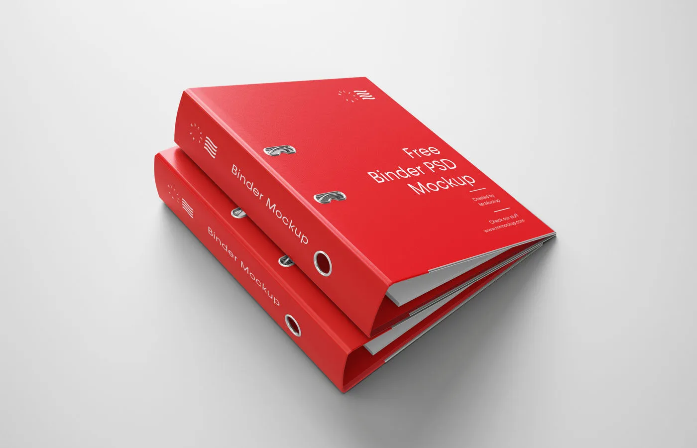 Whoever can not stand scattered papers all over an office desk appreciate the existence of binders. If you are working on a designing project that needs binder models, this will be of great help to you. The considered spots you can add your graphics on are the cover and spine part of the upper one and the spine of the lower binder.