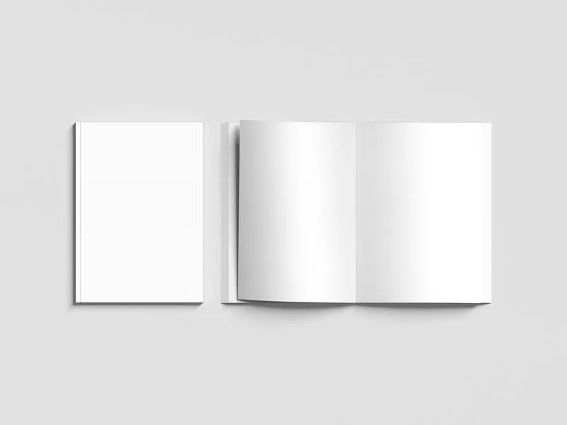 This mockup features two magazines in a clean and minimal top-view layout, allowing you to focus on your design without any distractions. The image centers on the magazines, with one open and one closed, providing a versatile way to display your magazine designs or other artworks.