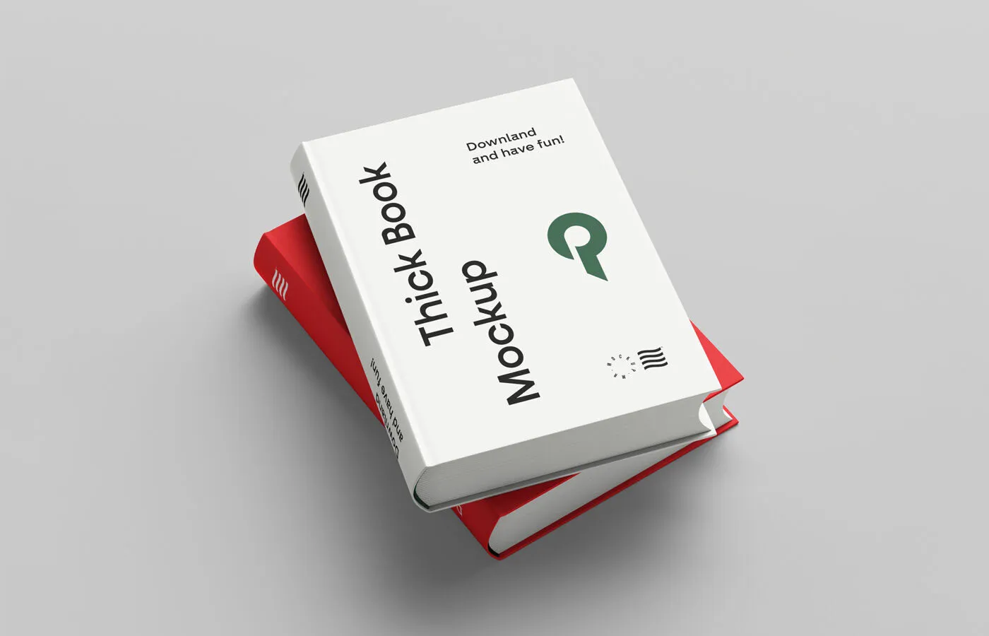 This PSD featuring two books placed on each other comes in handy for your personal and commercial projects. As said, the mockup consists of two thick books with a custom spine and cover from the perspective view. If you want to compliment the color of the cover of both books and their spines the way you like, you can easily do that with no trouble.