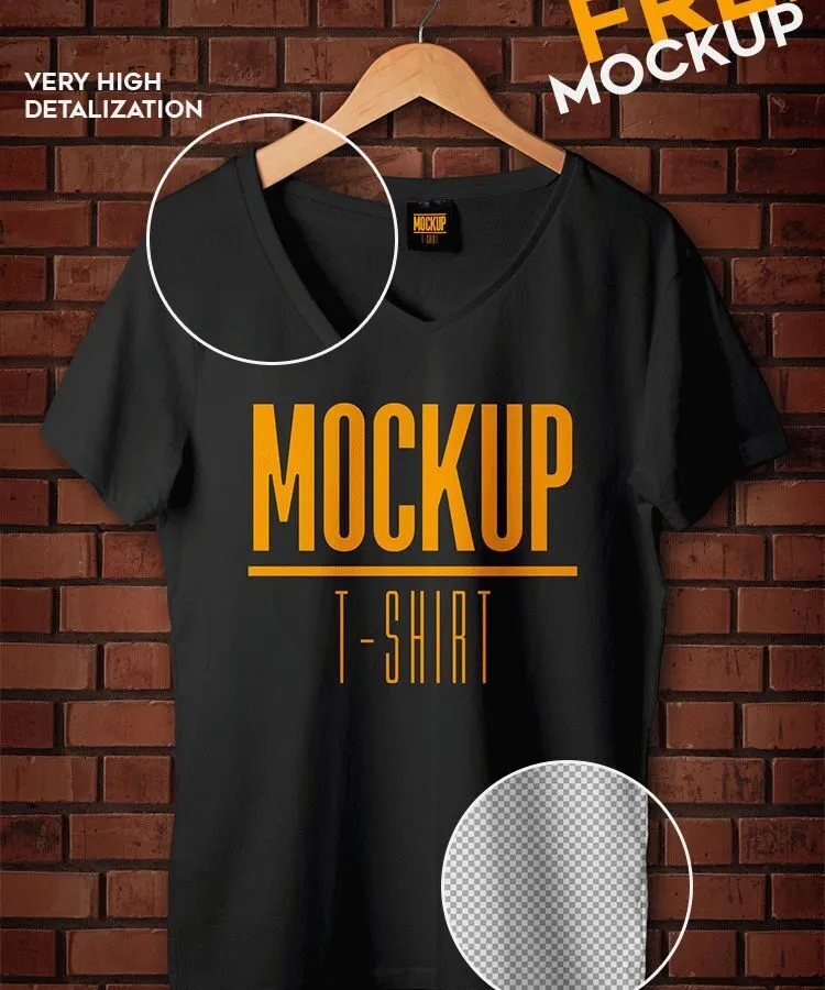 This mockup of a T-shirt hung on a hanger provides a realistic setting for showcasing your T-shirt designs. The T-shirt is displayed against a brick wall, offering a natural and appealing backdrop. This setup allows you to visualize how your designs will look in a real-world context.