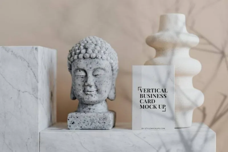 Mockup of a Vertical Business Card in Front View Featuring a Buddha Bust