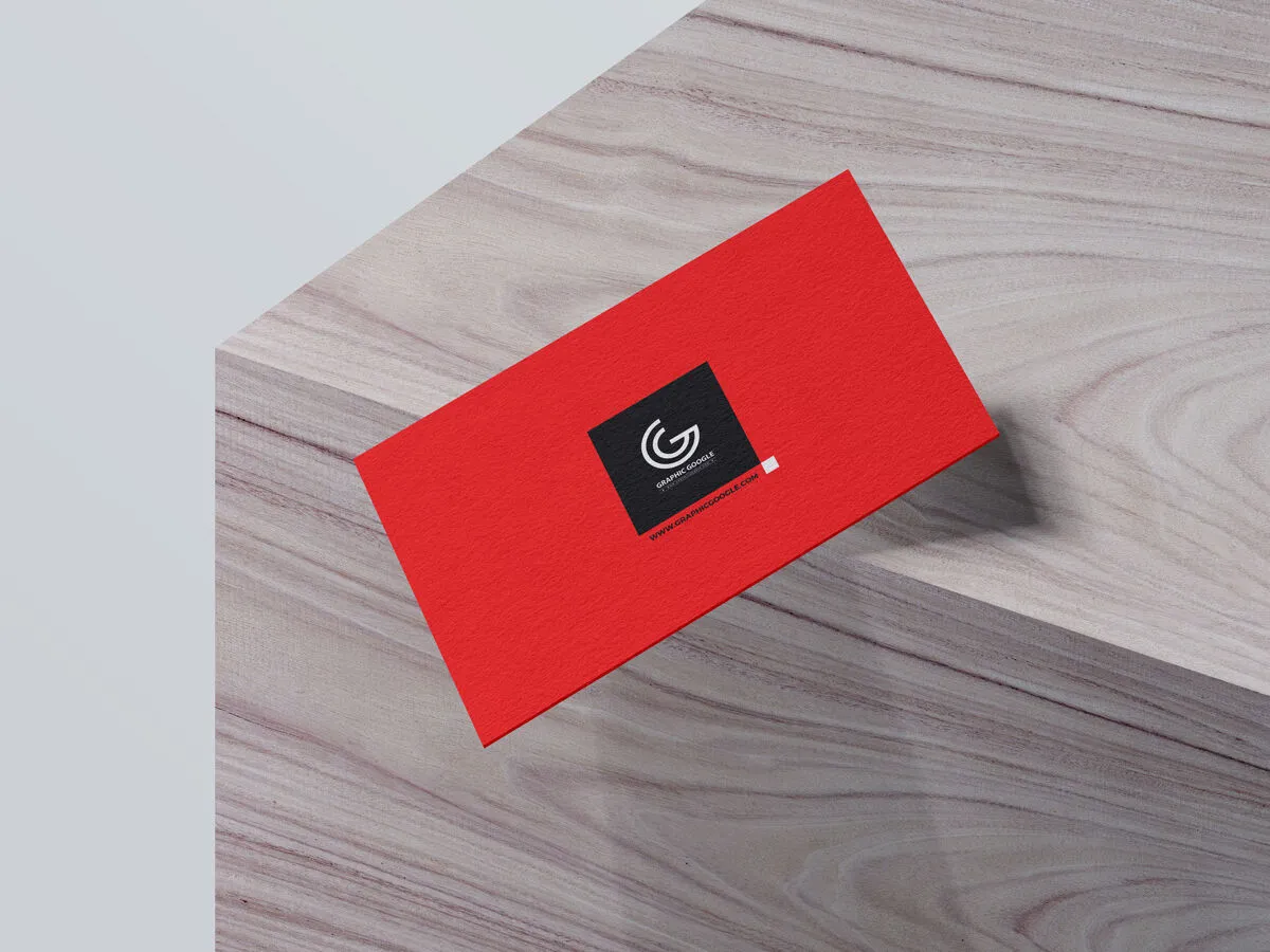 This PSD mockup features a realistic image of a business card falling off a wooden block, captured from a 34-degree angle. To use it, simply download the file, open it, and insert your project into the smart layers. Explore more similar mockups to find the perfect fit for your needs.
