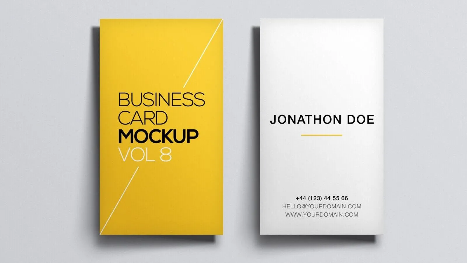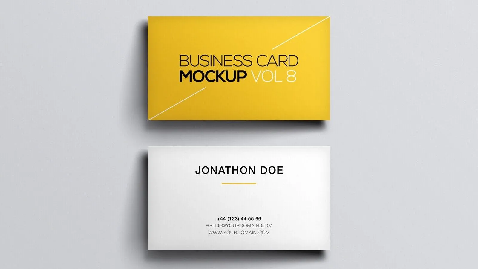 This mockup is all you need for a perfect presentation. A business gains popularity through its customers; They are the ones who spread the word about how good your products and services are. To seal your names on their minds and escape the tip-of-the-tongue situation, you need a well-designed business card to shout your brand name, logo, and slogan. It shows two business cards next to each other in a top-view close-up shot.