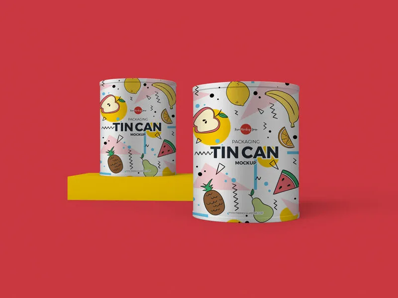 You are meeting a tin that provides you with a single photo of two tin cans standing in a plain scene with a bit of a distance in between. There is a flat box on which one of the cans is standing. You can fully customize this PSD mockup and have everything to your preferences. By everything, I mean not just the cans but the background as well.