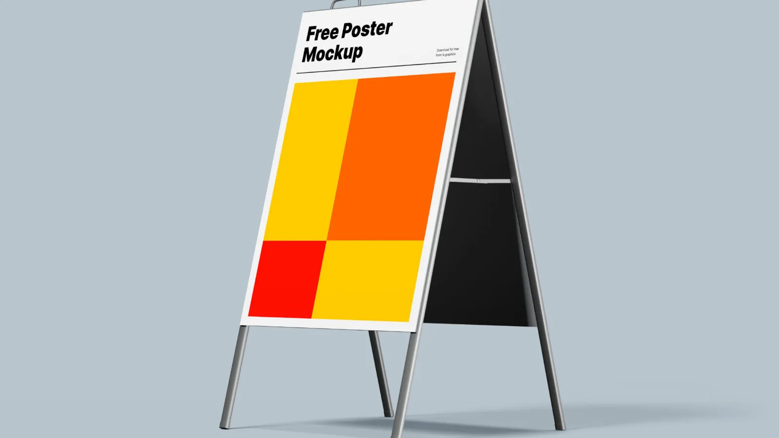 This freebie is a must-have model for professional artists. It shows a poster stand that can embed two distinct posters simultaneously. A complete scene of its two sides is provided in two different preview images. It is standing firmly in a simple background with an amount of shadowing that enhances its naturalness aspects.