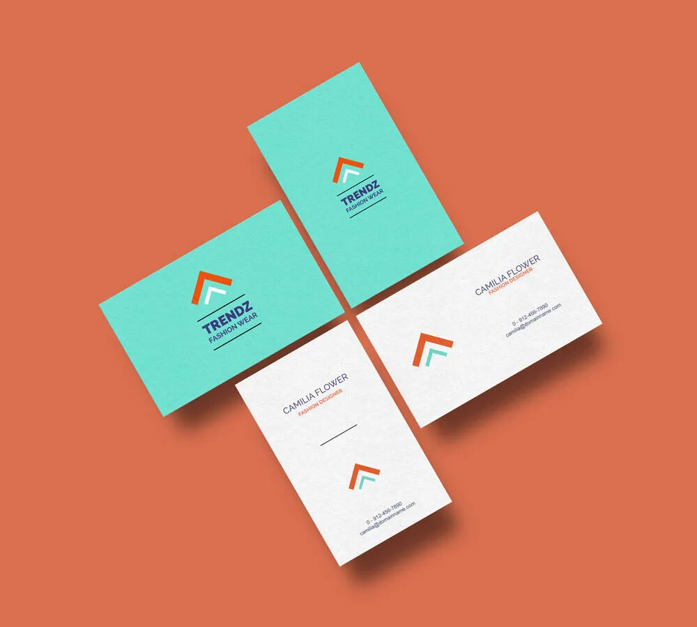 Mockup Showing Overhead View of Four Landscape and Portrait Business Cards