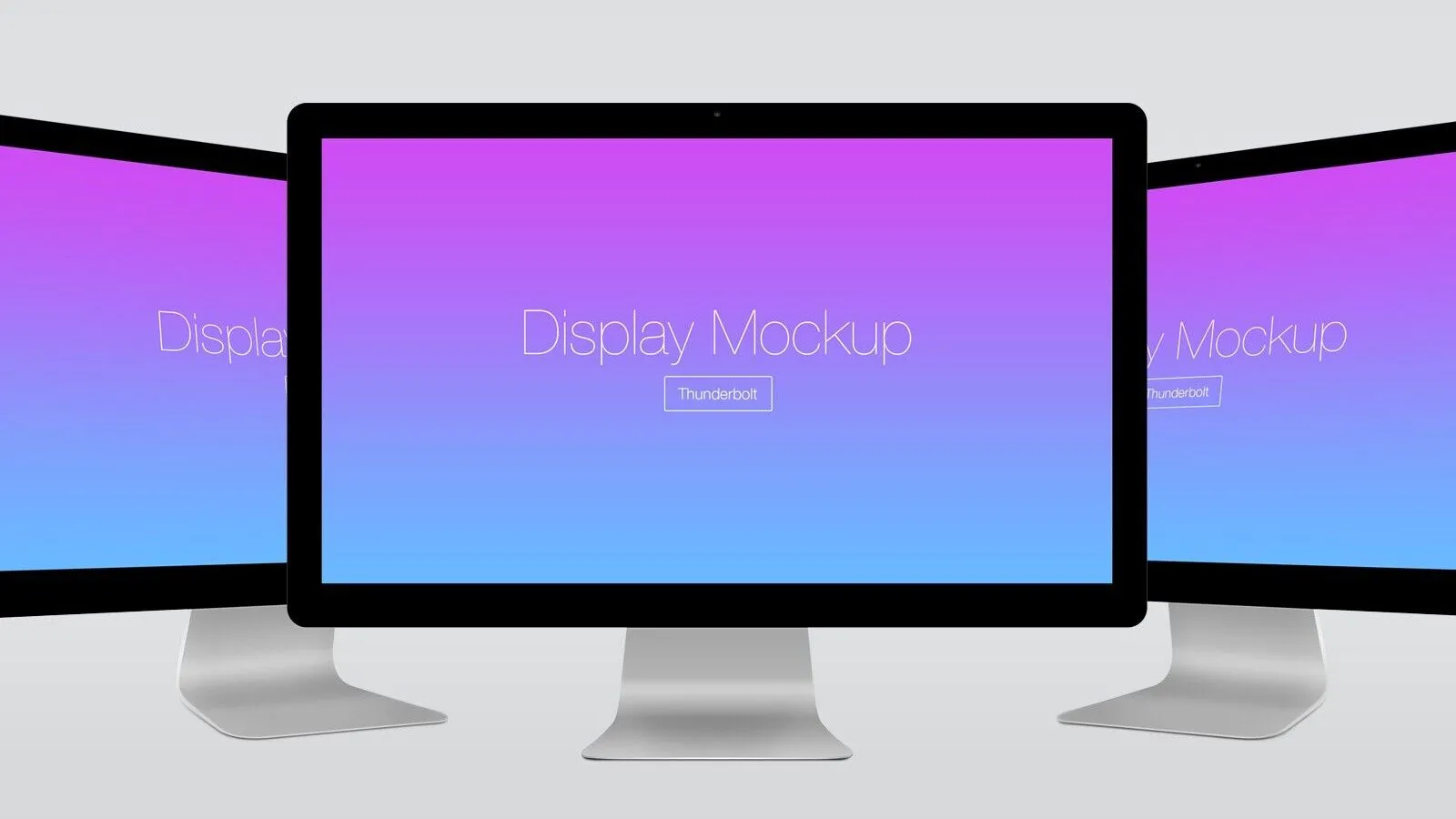 If you need a way to showcase your user interface designs from various angles, consider this Apple Thunderbolt Display mockup. It features three different views, including a full front view and two side-angled perspectives, giving you flexibility in presentation.