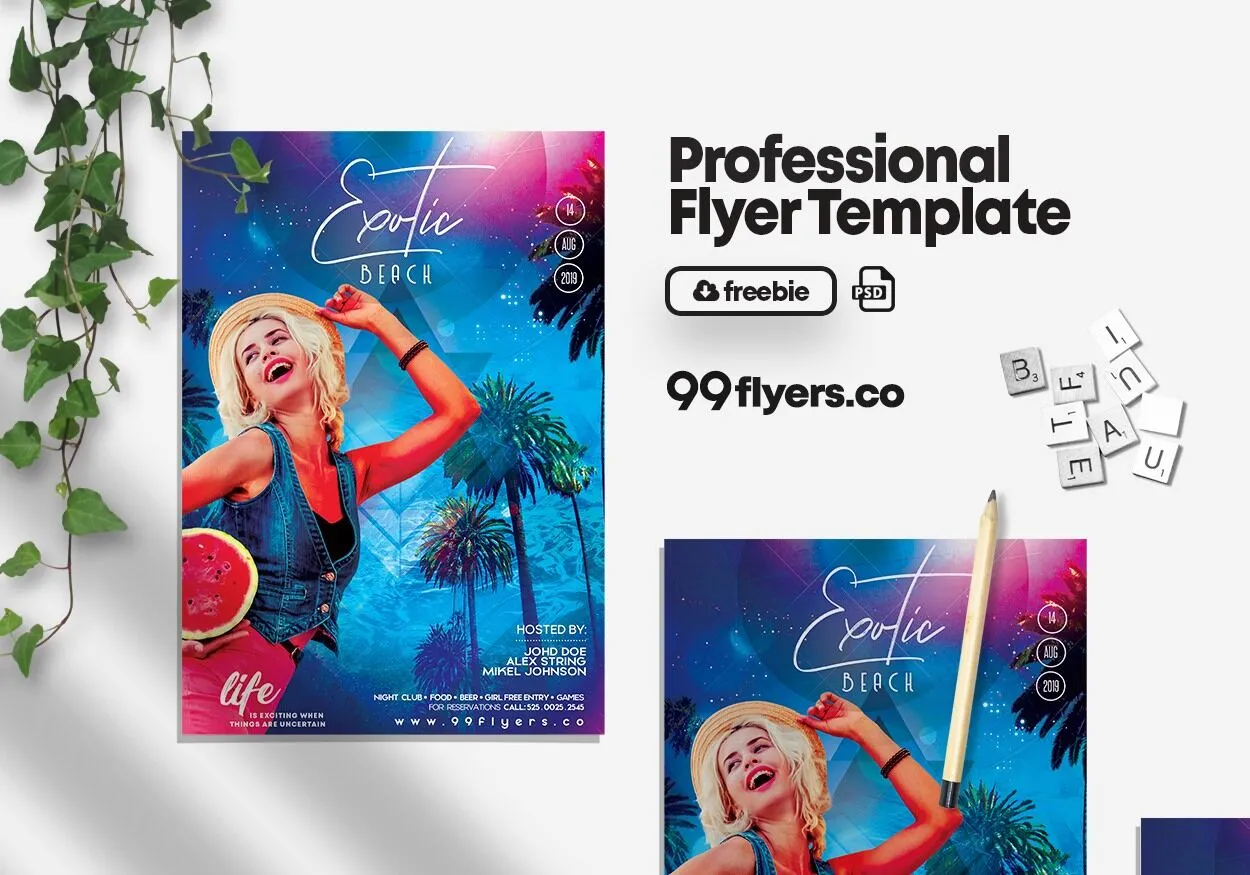 The template’s eye-catching blue color adds a lively touch, making it ideal for creating attractive flyers. Whether you’re promoting a beach party, summer event, DJ night, or any tropical-themed gathering, this template provides a versatile and visually appealing option to engage your audience.