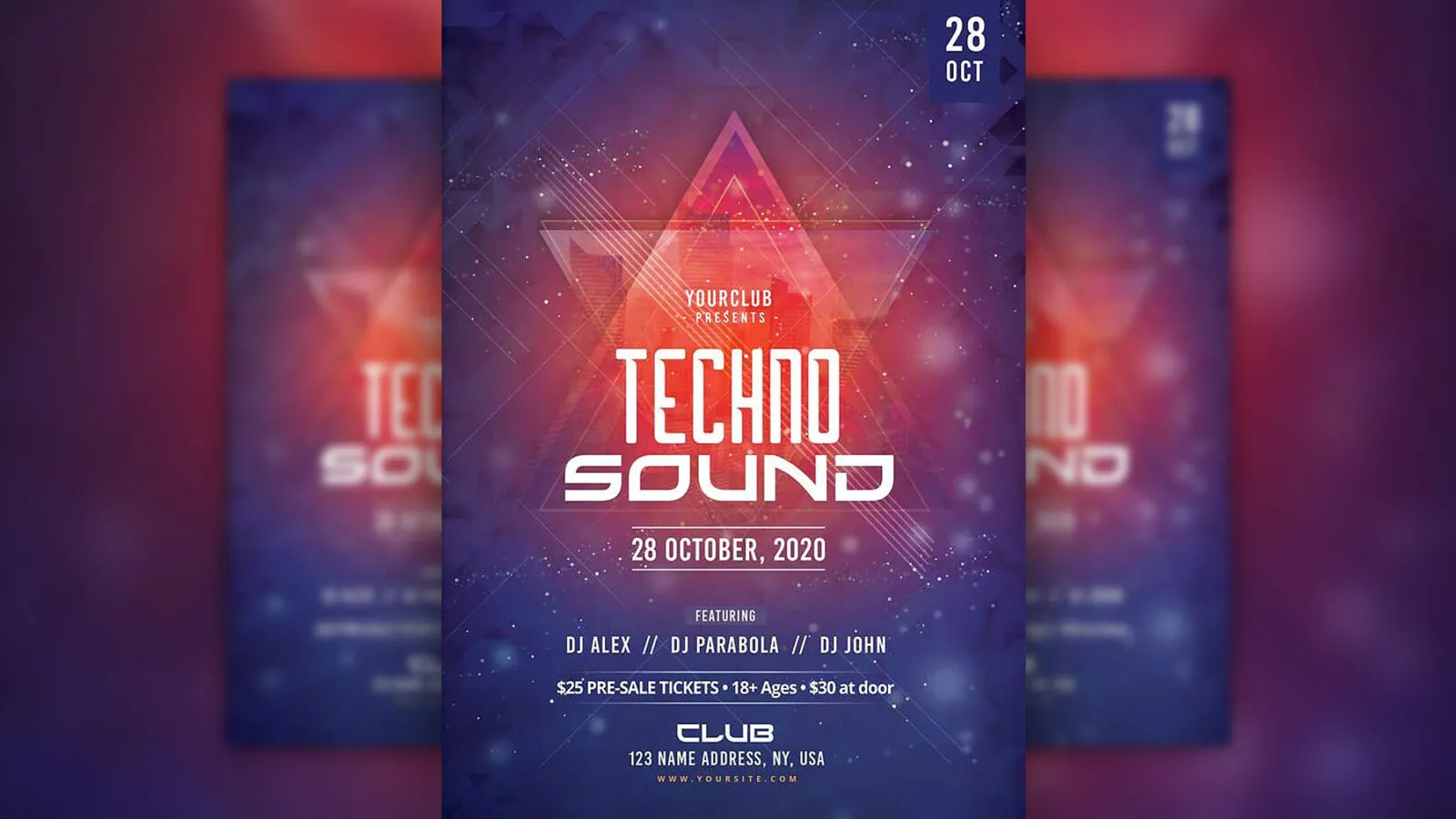 Today’s suggestion is a helpful flyer template that has been well designed to promote parties, nightclub events, hip hop, a DJ set, remix parties, Electro parties, guest DJ, EDM parties, an electronic dance event, club events, and more. You can use this vibrant techno sound flyer to show your upcoming event in a way that attracts all people.