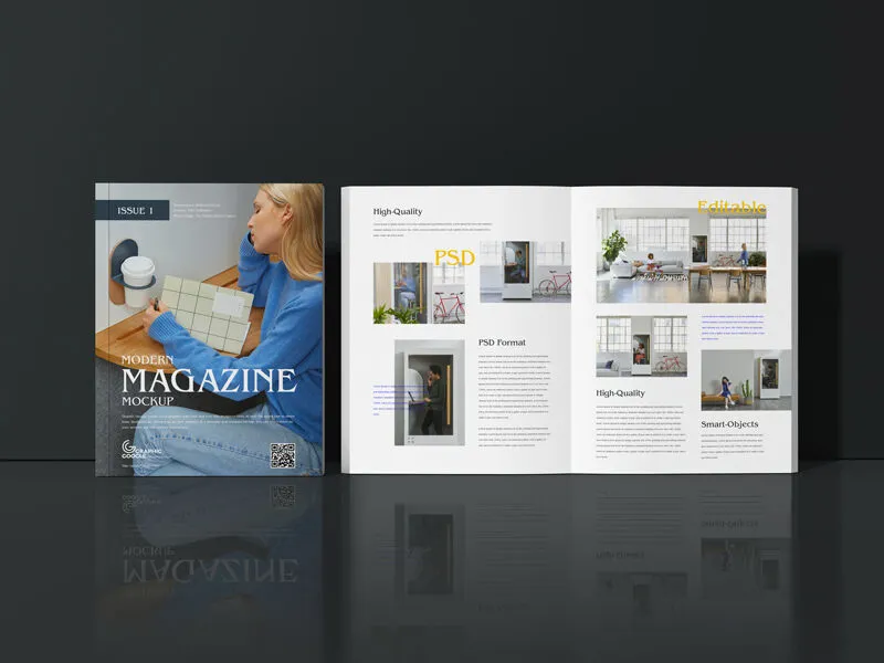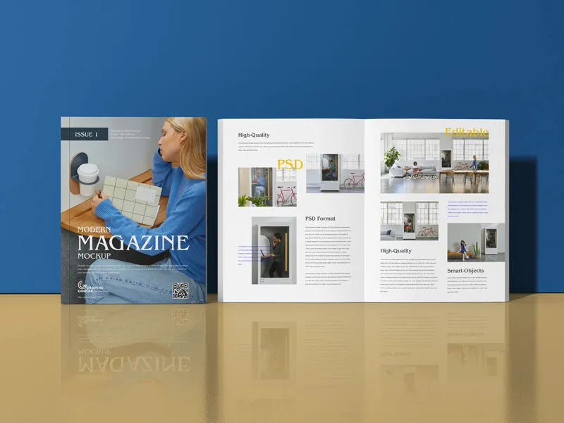 The Modern Magazine Cover and Inner Pages Mockup is a versatile tool for showcasing a wide range of magazine designs, from sports and cooking to home, gardening, and modeling. Its simple and adaptable design makes it suitable for any magazine subject. This mockup provides a clear front view of a magazine cover along with the inner pages, making it ideal for designers who want to display multiple designs in a cohesive and professional manner.