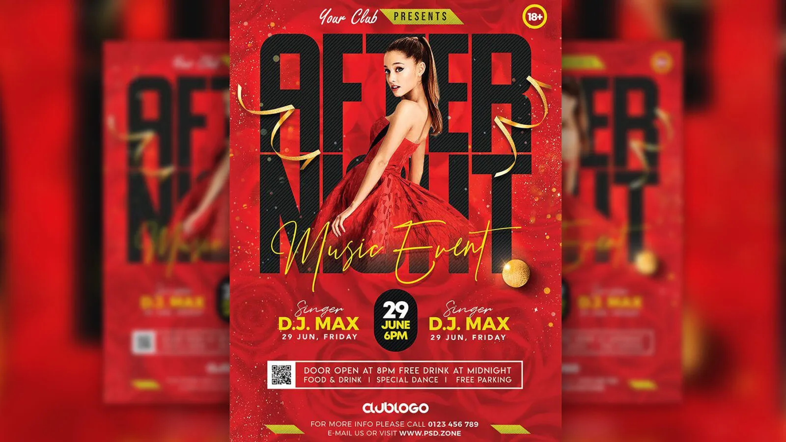 If you want a flyer for music events/parties, today’s product might be of use for you. This freebie is a modern music party flyer template for any concert or music event. The red and gold colors on this product and the sparkles will provide an exciting flyer for you.