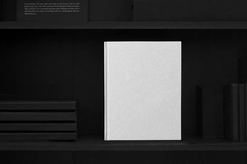 This mockup features your design on a white book placed on a black shelf, surrounded by categorized black books. The setup is designed to highlight your work from a beautiful angle. To use this mockup, simply download it and open it in Photoshop. You can easily insert your design using the Smart Object feature and achieve a polished result.