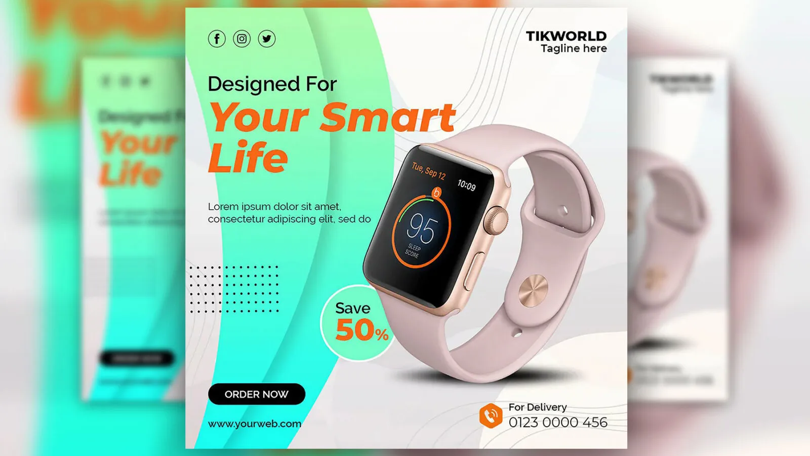 No matter if you are working as a designer or an entrepreneur, this smartwatch discount promotion enables you to increase your sales more. By the way, along with the best quality of this smartwatch product template, you have a free uploading chance too.