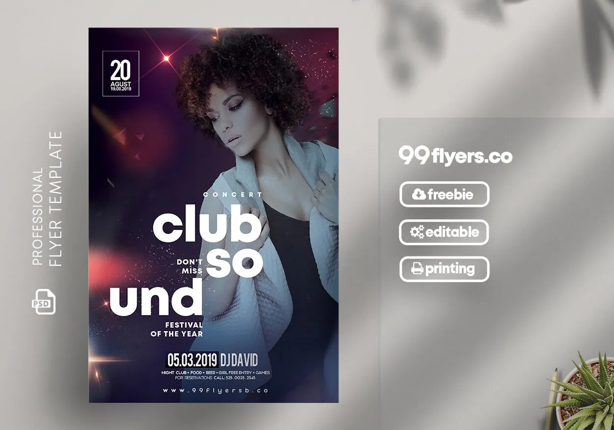 If you’re planning a party at the club, and if there’s going to be music and a DJ, or if there’s an event, you can just use this flyer. This flyer has a special blend of colors sparkles and special lights. The writing format makes it looks very unique. The model in the can be replaced with your model as it does not exists in the file you download.