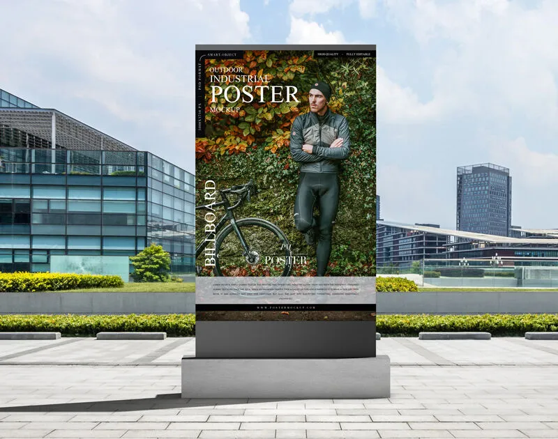 Nowadays, billboard advertising plays an important role in promoting your brand. If you are seeking an outdoor for your project design, you can download and use this outdoor Industrial billboard mockup PSD to display your creativity never-ending. This mockup shows a young man with his bicycle leaning against a green wall.