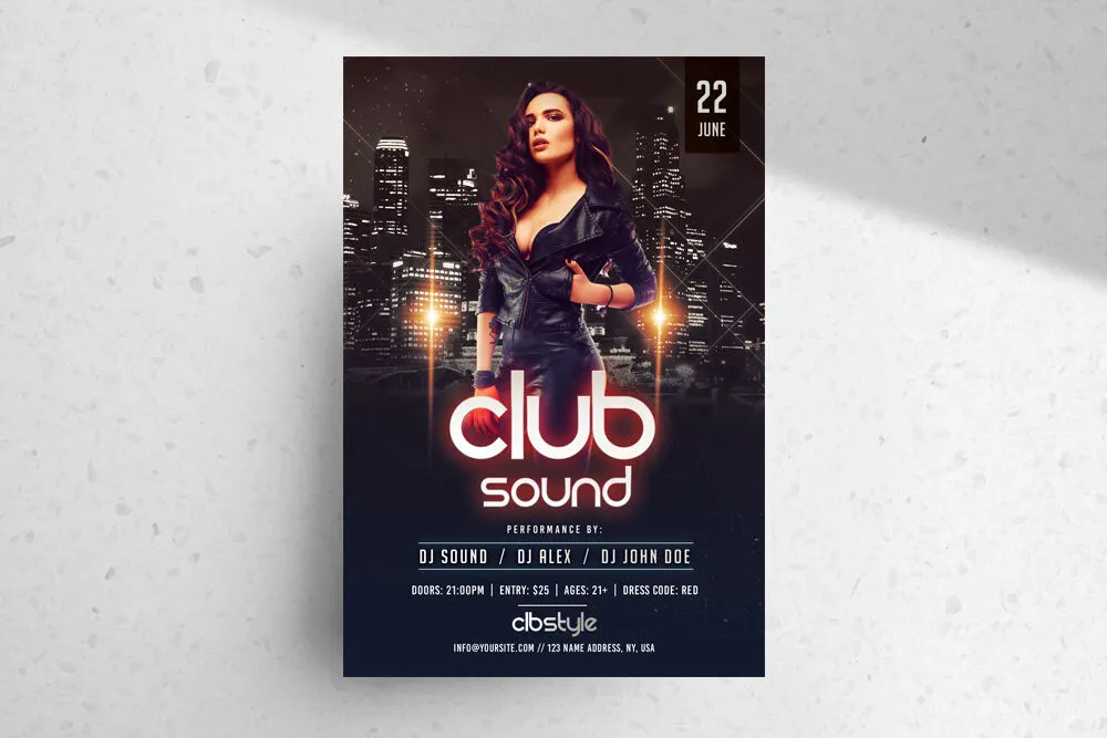 This high-quality template is easy to customize to fit your needs. Created by PixelsDesign, the flyer can be shared on social media or printed once you have tailored it. Please note that the model on the cover cannot be used, so you should replace it with your own image. Visit us to download the template and enhance your club’s visibility.