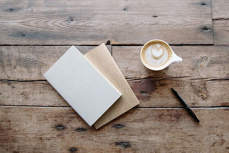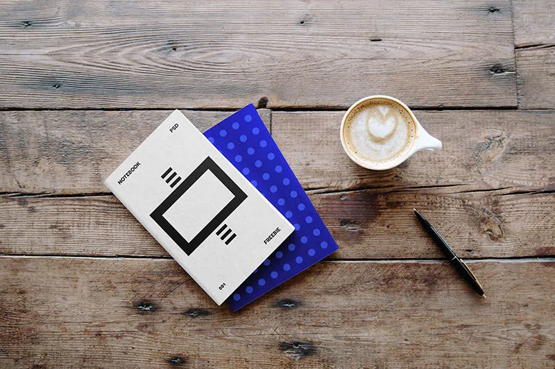 If you’re in the process of finalizing a notebook design or want to visualize how it will look, this Notebook Mockup With A Cup Of Coffee And Pen is a great tool. It features a realistic setting with a pen and a cup of coffee on a wooden table, allowing you to present your design in a stylish way.