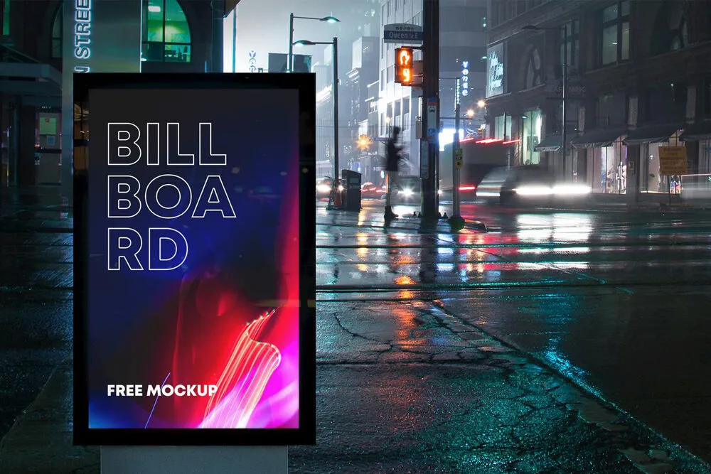 This is coming in the street at night. Don’t waste your precious time and make your presentation without extra costs. For more billboard mockups, you can always check . Download the file right away and enjoy your work.