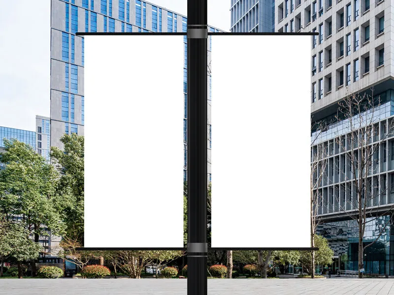 If you want to create a realistic presentation for your upcoming presentation, you should pick a scene that displays an outdoor view to keep things as lifelike as possible. For this matter, here is a fantastic mockup Featuring two banners attached to a lamp post. With that in mind, you have enough space for inserting almost everything you want and creating a full presentation.